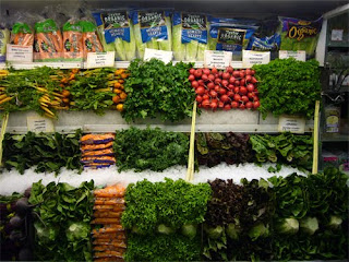 Verse groenten op Amerikaanse wijze geëtaleerd in ijs bij Eli’s